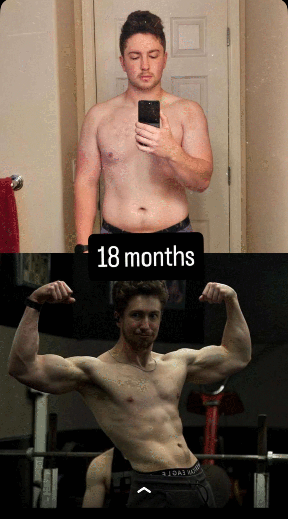 “I used to be 40 pounds heavier, frustrated, and constantly second-guessing everything I did. No plan, no results, just wasted effort. Once I locked in my training and actually understood how to eat for my goals, everything changed. I didn’t just lose weight – I built a physique I’m proud of. Natural. No shortcuts. Just relentless consistency.”
